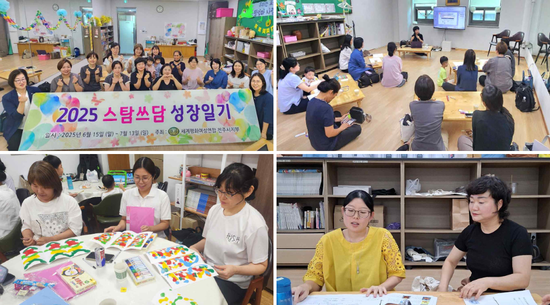 사단법인 세계평화여성연합(이하 여성연합)은 2025년 6월 1일부터 10월 31일까지 전국 5개 지부(김해, 전주, 청주, 서순천, 천원특별지부)에서 다문화가정 부모와 자녀 80여 명을 대상으로 ‘스탐쓰담 성장일기(스스로 탐구하고 다독이며 성장하는 생활)’ 프로젝트를 진행했다. 본 사업은 부모와 자녀가 서로를 이해하고, 가족 내 역할과 관계를 새롭게 정립할 수 있도록 돕는 상담·교육 프로그램으로, 여성연합 위드우먼 분과가 주최하고 여성연합 각 지부가 주관해 운영되었다.